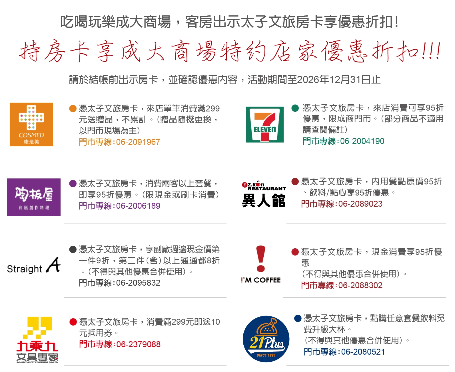 持房卡享成大商場特約店家優惠折扣